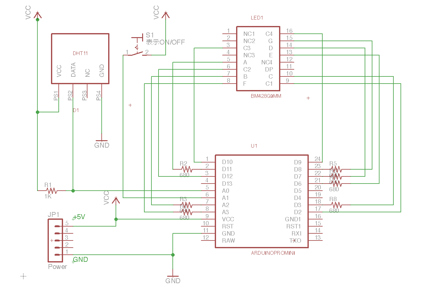 そもそもは秋葉原のa店でこのLEDがディスカウントされていたことが発端だ。 「ひとつ10円」に釣られて、ポチってしまった。10個買っても100円は嬉しかった。 4桁・高さ9mmの小さな表示器だ。 届いたものを見て、「さて何に使おう?」 たまたま、 「歳を取ると温度・湿度に関する感度が悪くなるので熱中症に注意しましょう。」 と言う注意を何かで読んだ。そして、その前にArduino UNOで遊んだDHT11と言う温湿度センサが手元にあった。 それで、これを作る気になった。 ただし、この小さなLEDをシールドに付けてUNOで表示させるのはバランスが悪い。何よりUNOは高価だ。 ネットで調べるとArduino Pro/Miniなら小さくて安い。ATMEGA328PのCPUが単体で250円程するのに、ProMiniはチップも載って350円程だった(!)CPUのピンを全部配線することを考えると、ProMiniのC/Pが際立っていた。 「これなら沢山作って知り合いにあげても良いかな?」と、量産も見据えてスタートしたのがこのプロジェクト(笑)だった。