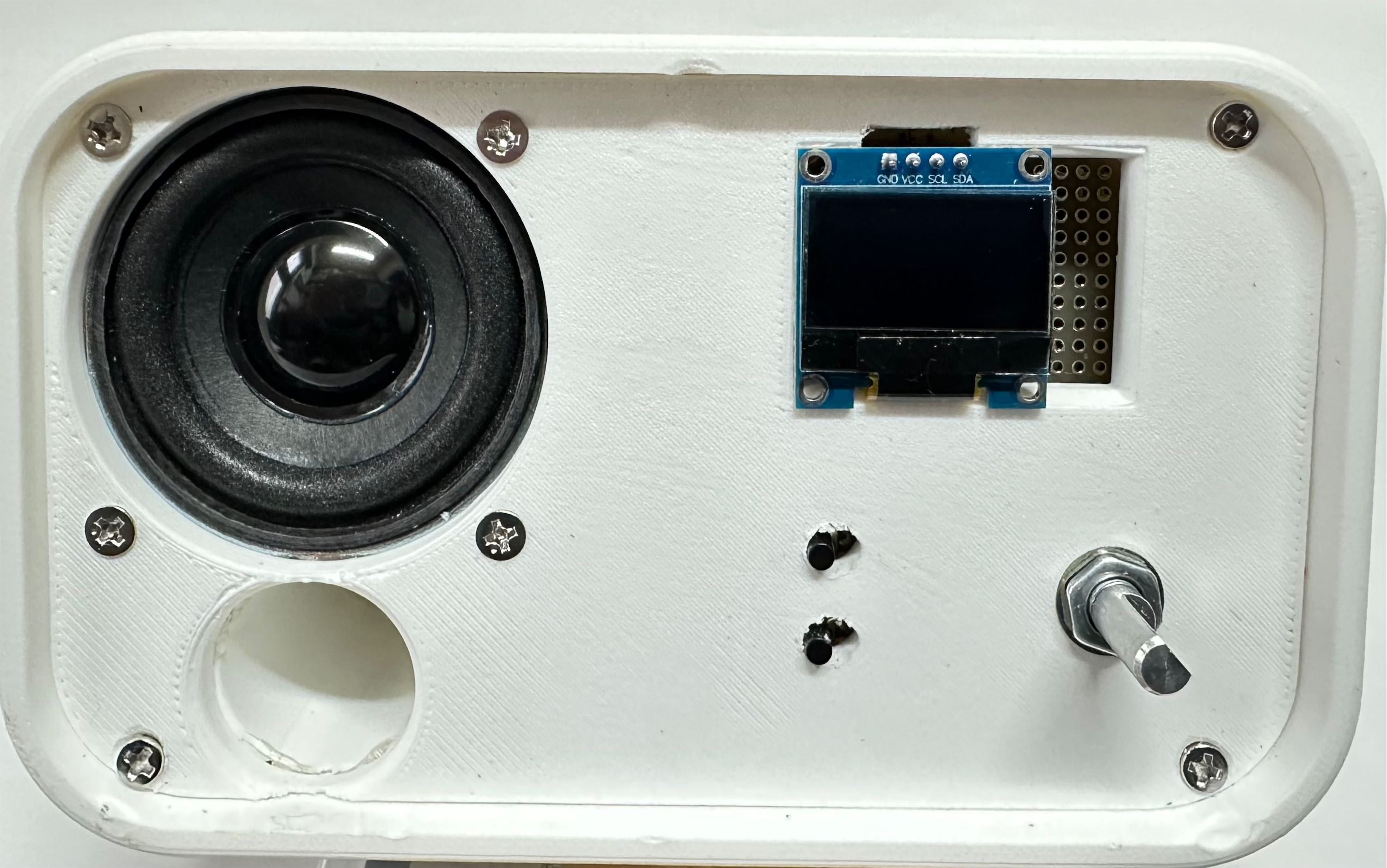 マンマシンI/Fはロータリーエンコダーと音量+/-のタクトスイッチ。表示は0.96'のOLED。