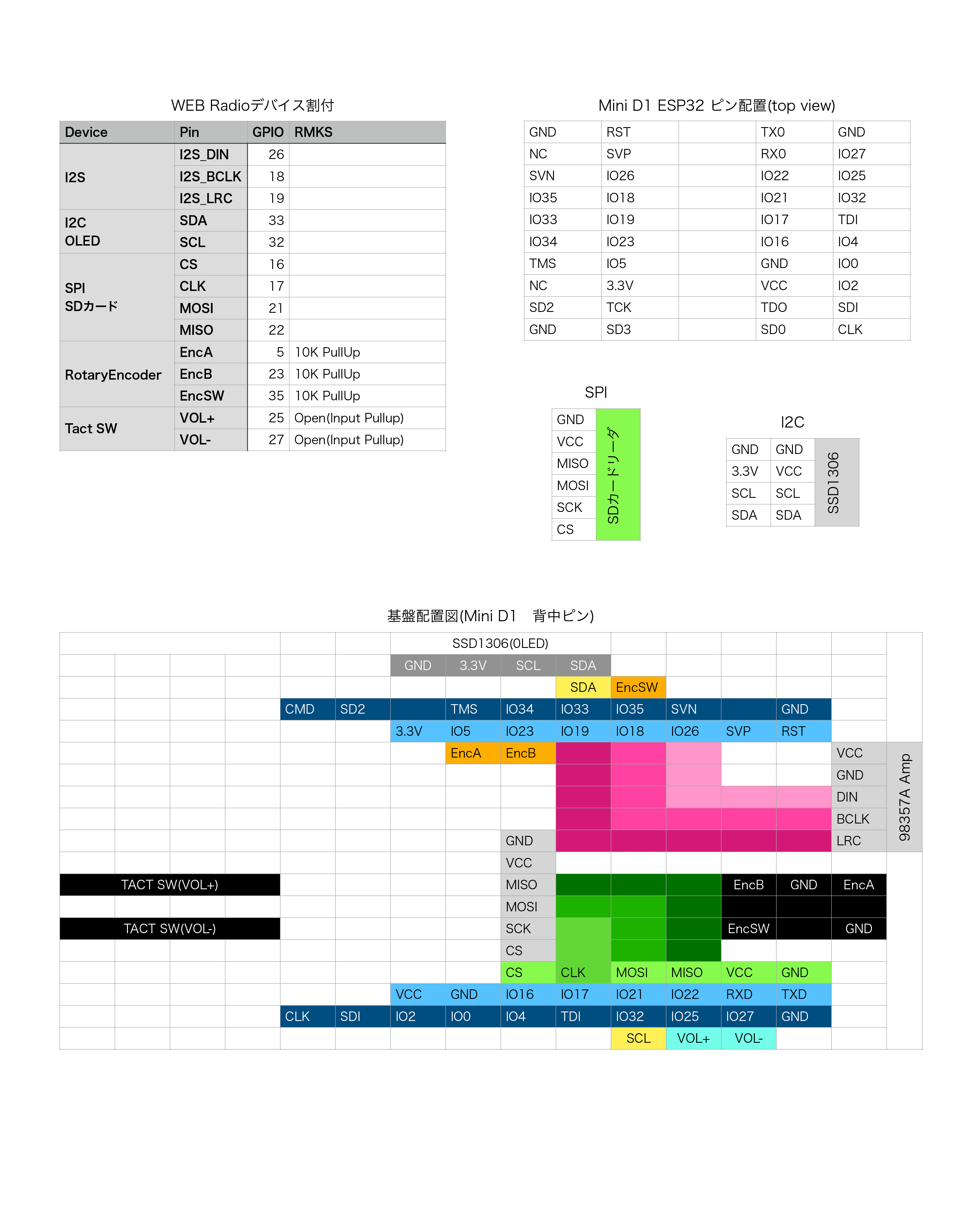 構成はESP32の小型ボードと、I2Sで接続したMAX98357Aと言うDAC+AMPが基本。