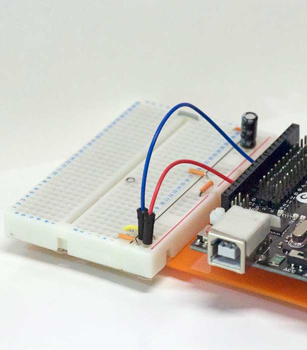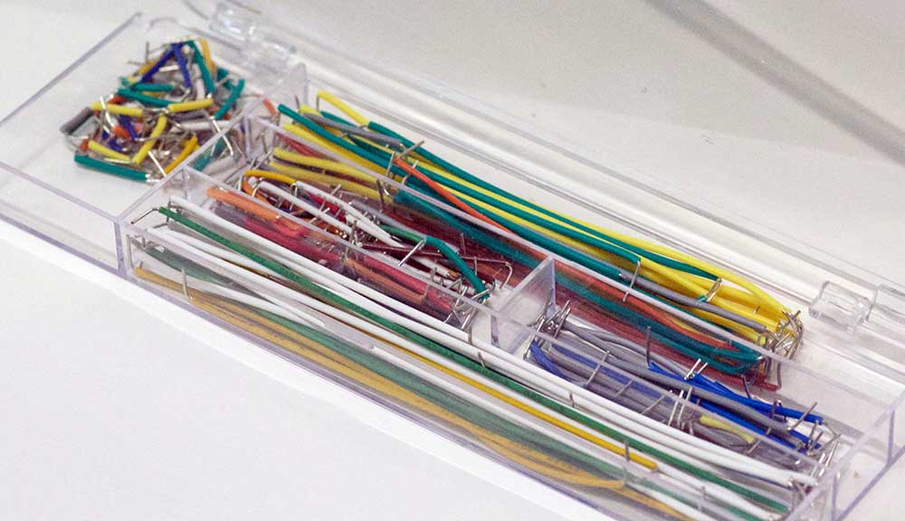 それに較べて、ブレッドボードなら「ジャンパー線」と言う、専用の線を刺して回路を作っていくので、修正は刺し直すだけだ。