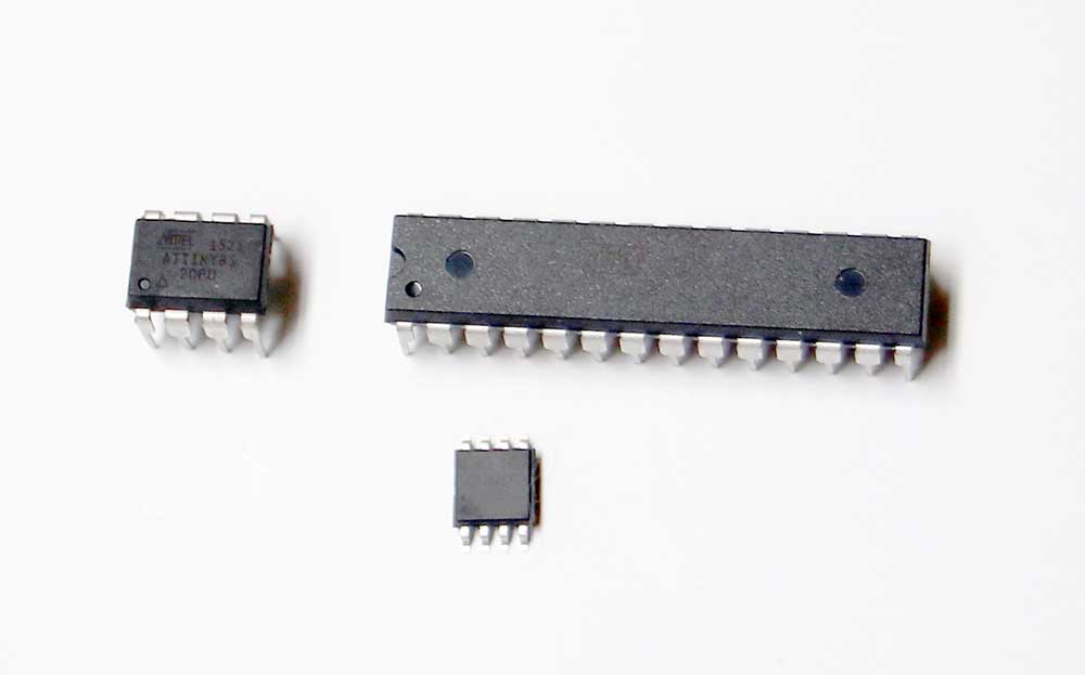AtTinyにも多くのバリエーションがあるが、ピンが8本しかないAtTiny12とかAtTiny85が使いやすい。
