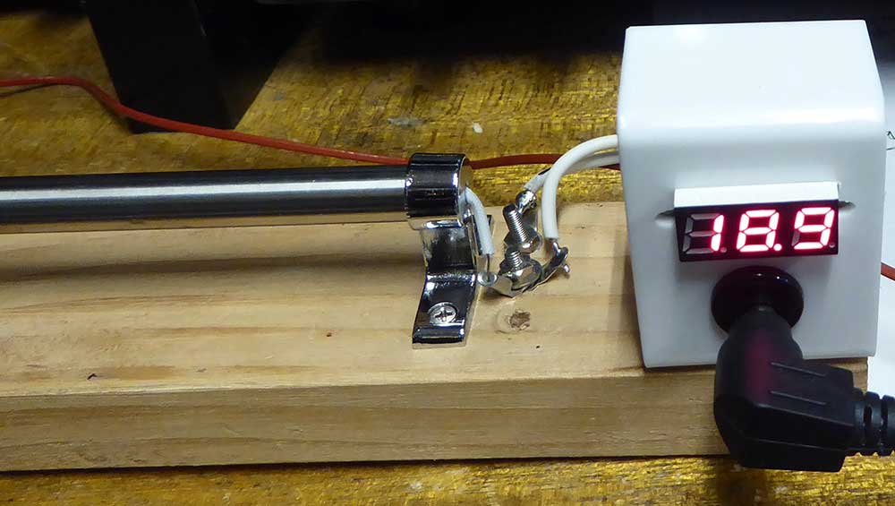 出来上がったものの実測値は、18.7Vで0.9Aになった。 これで15分程で140〜150℃に達した。素晴らしいことにこれ以上温度は上がらない。 実際にアクリル板を当ててみると、以外に綺麗に曲げられた。